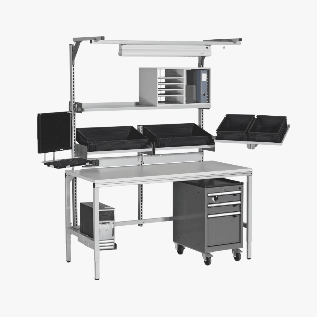 Ob für Montagearbeiten, Verpackung oder Büroanwendungen – Ihre individuell konfigurierte Lösung passt sich optimal an wechselnde Anforderungen an und sorgt für maximale Effizienz im täglichen Betrieb.