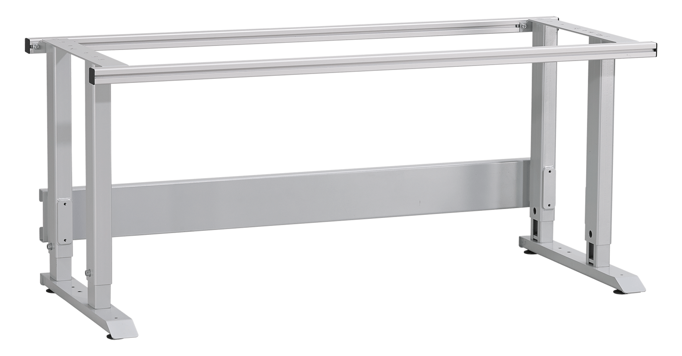 Das ERGO-Vario Plus Grundgestell ist besonders geeignet für Steh-/Sitzarbeitsplätze. Es bleibt auch in voll ausgefahrener Position stabil und robust.